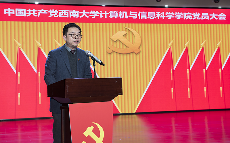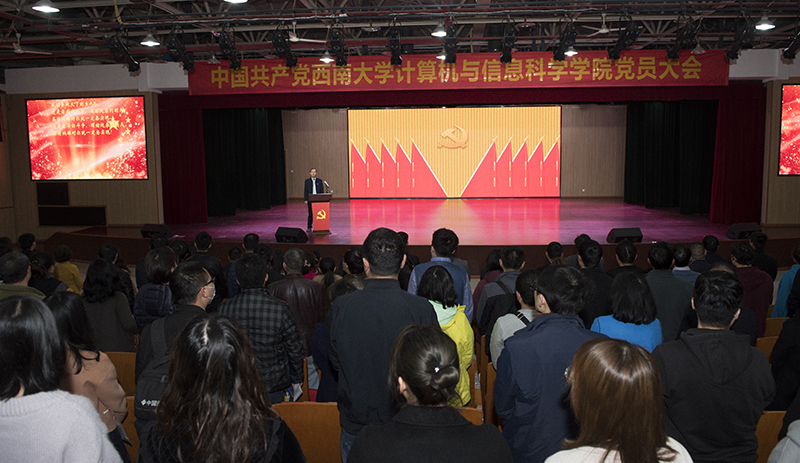 2021年3月12日下午,中国共产党西南大学计算机与信息科学学院党员大会在西南大学圆顶三楼报告厅胜利召开。本次大会的主题是:全面深入学习贯彻落实习近平新时代中国特色社会主义思想和党的十九届五中全会精神,围绕立德树人根本任务,凝心聚力、改革创新,全面加强党的领导,为建设特色鲜明的高水平学院努力奋斗。