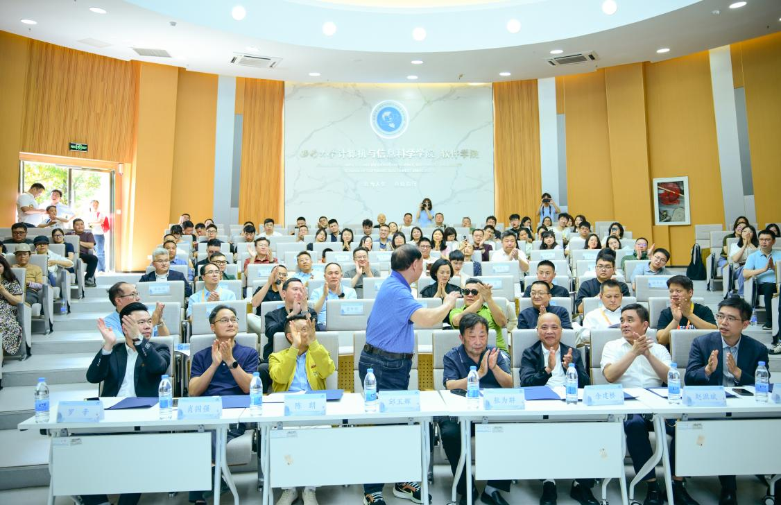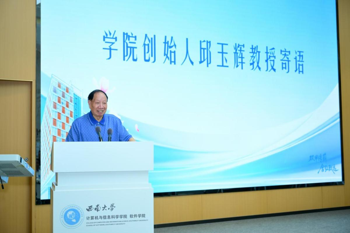 学院创始人、年逾八旬的邱玉辉在会上深情寄语。他动情回忆起学院肇始初期克服重重困难坚持办学的艰辛历程。随后,他谈到设立“玉辉奖学金”的初衷,表达了他对后辈学子的殷切期望,希望广大校友能为那些勤奋刻苦、勇于创新的年轻人提供支持与鼓励,帮助他们更好地追逐梦想。最后,他鼓励新一代计信人要紧跟时代步伐,既要勇于创新,也要保持理性思考,在各自的领域奋发有为,为母校争光,为学院添彩。