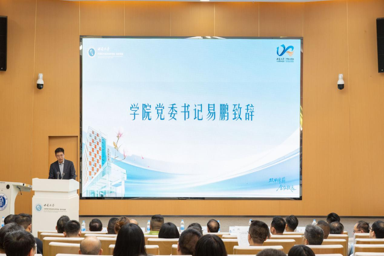 大会在庄严的校歌声中开幕。会上,学院党委书记易鹏发表了热情洋溢的致词。他深情回顾了学校自1960年组建计算机科研组以来砥砺奋进的发展历程,高度赞扬了广大校友在各行各业取得的卓越成就,表示校友是学院最生动的见证、最耀眼的名片、也是学院最深情的牵挂。他强调,校友会的成立旨在搭建凝聚情谊、汇聚资源、共谋发展的平台,希望校友们常回“家”看看,将实践经验、产业需求、行业资源与视野带回课堂和实验室,与学院携手同心,共谱发展新篇章。