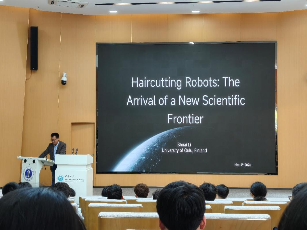 2026年3月4日下午,学院“弘毅零一”学术报告在25教一楼学术报告厅成功举办。本次报告特邀芬兰奥卢大学信息技术与电气工程学院教授、IEEE/IET/AAIA Fellow李帅教授主讲,为学院师生带来了题为“理发机器人:一个新科学前沿的到来”的精彩学术分享。