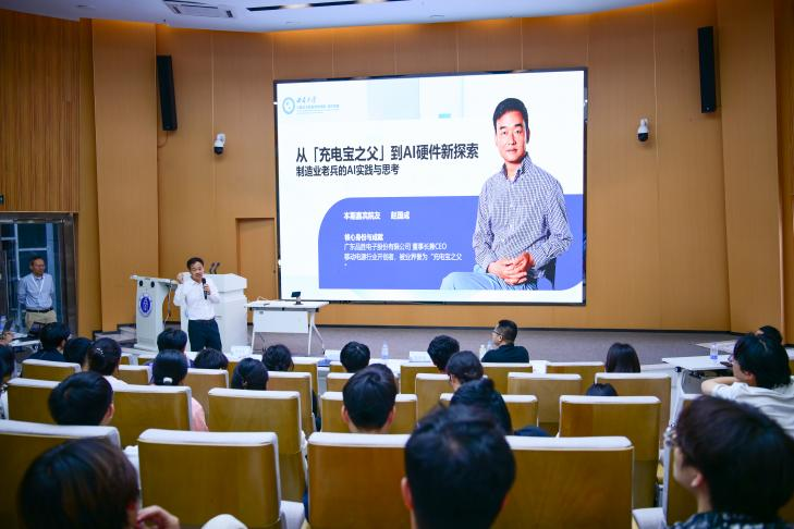4月17日下午,1986级校友、品胜电子创始人赵国成学长以“从充电宝之父到AI硬件新探索”为主题,为同学们带来了一场兼具技术深度与行业洞见的分享。分享中,他以品胜最新研发的iDock为核心载体,通过现场投屏演示,生动直观地展示了这款创新AI硬件的核心价值:它以“解放双手”为设计原点,通过与大模型的深度协同,可流畅完成智能购物、场景拍摄、人脸追踪等多场景任务,让大家真切感受到了“软硬一体”理念下,AI硬件如何为日常交互带来效率革新。赵国成学长的分享不仅让同学们对AI硬件的创新方向与行业发展有了更深刻的认知,更传递了制造业老兵拥抱智能时代、坚守技术初心的行业精神,为在场学子的专业学习与职业规划提供了宝贵的启发与指引。